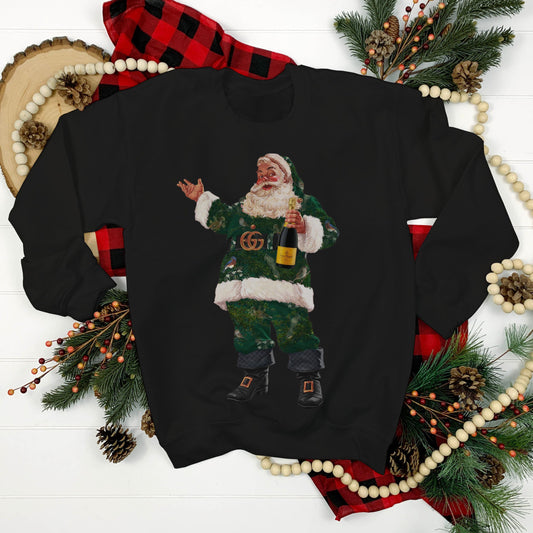 Vintage Santa Crewneck Designer Santa Fashion Santa Retro Christmas Santa Champagne Santa Sweatshirt Trending Christmas Sweatshirt